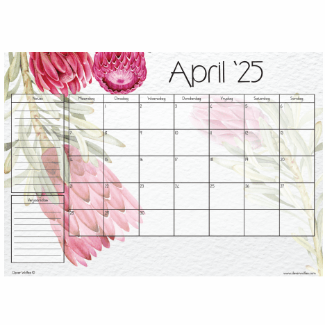 – ‘n 2025 Jaarkalender (1 Bladsy – A1)