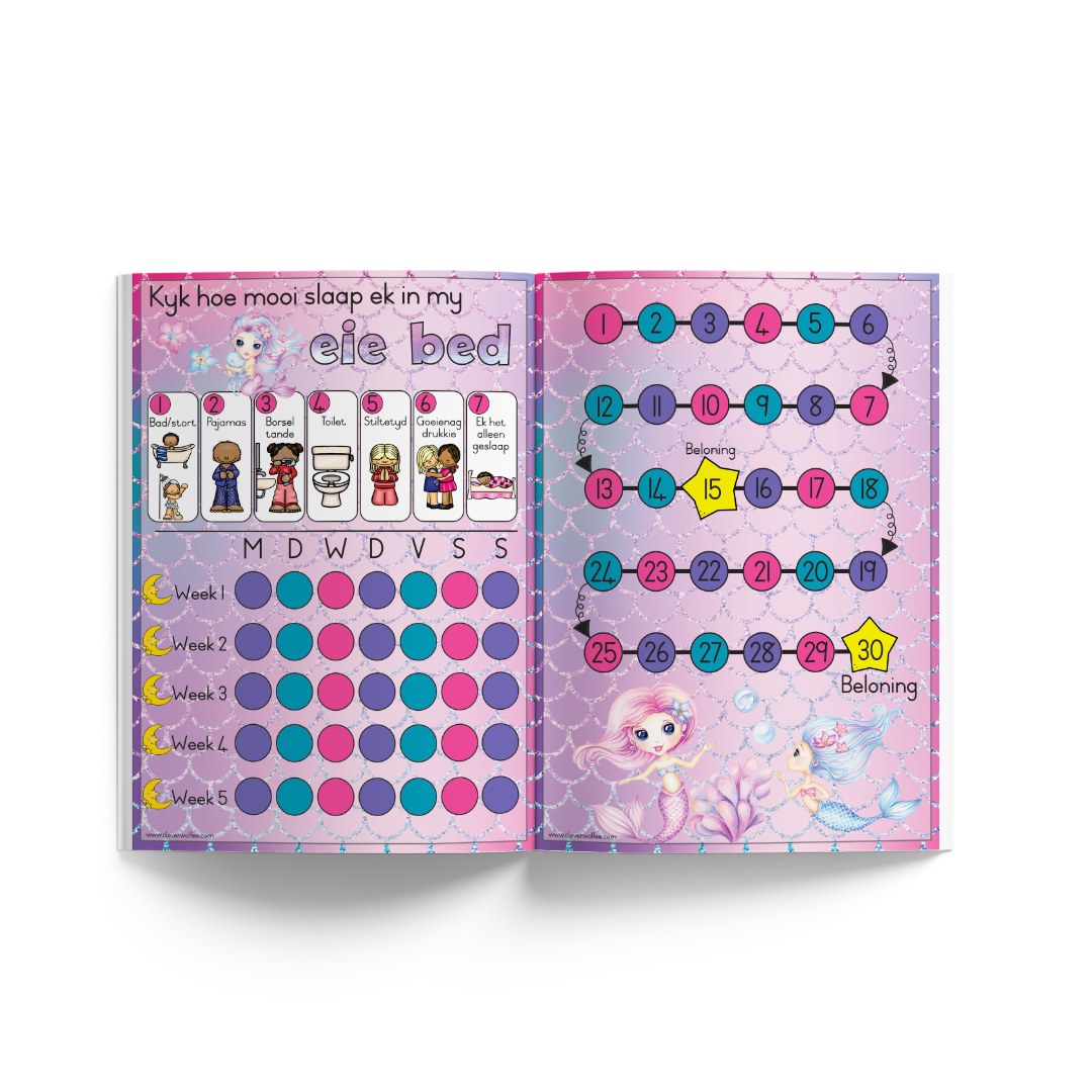 Hierdie pakket bevat `n slaaptyd roetine, sowel as spasies om af te merk wanneer `n takie voltooi is.