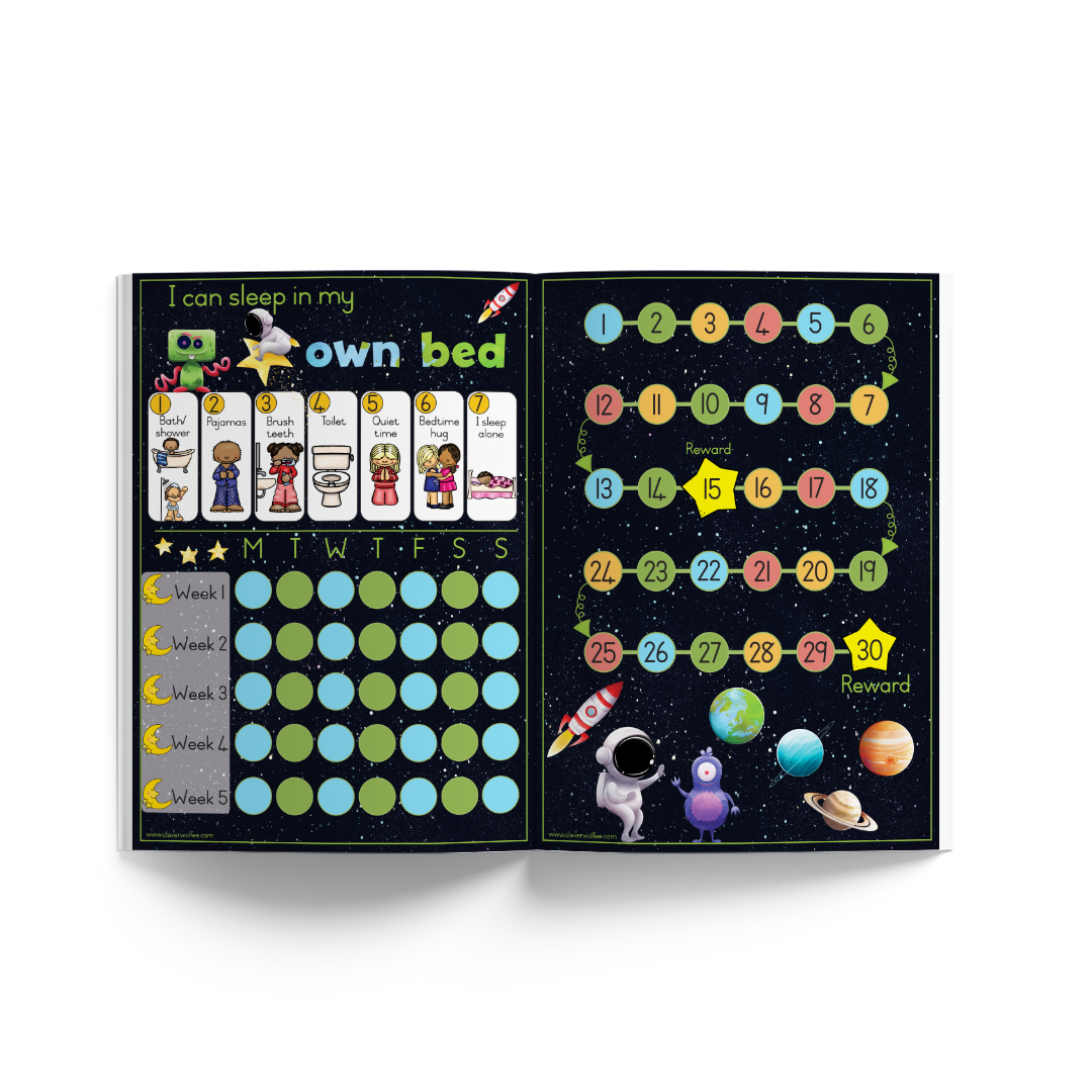 This bundle includes a bedtime routine, as well as designated spaces for tasks successfully completed.