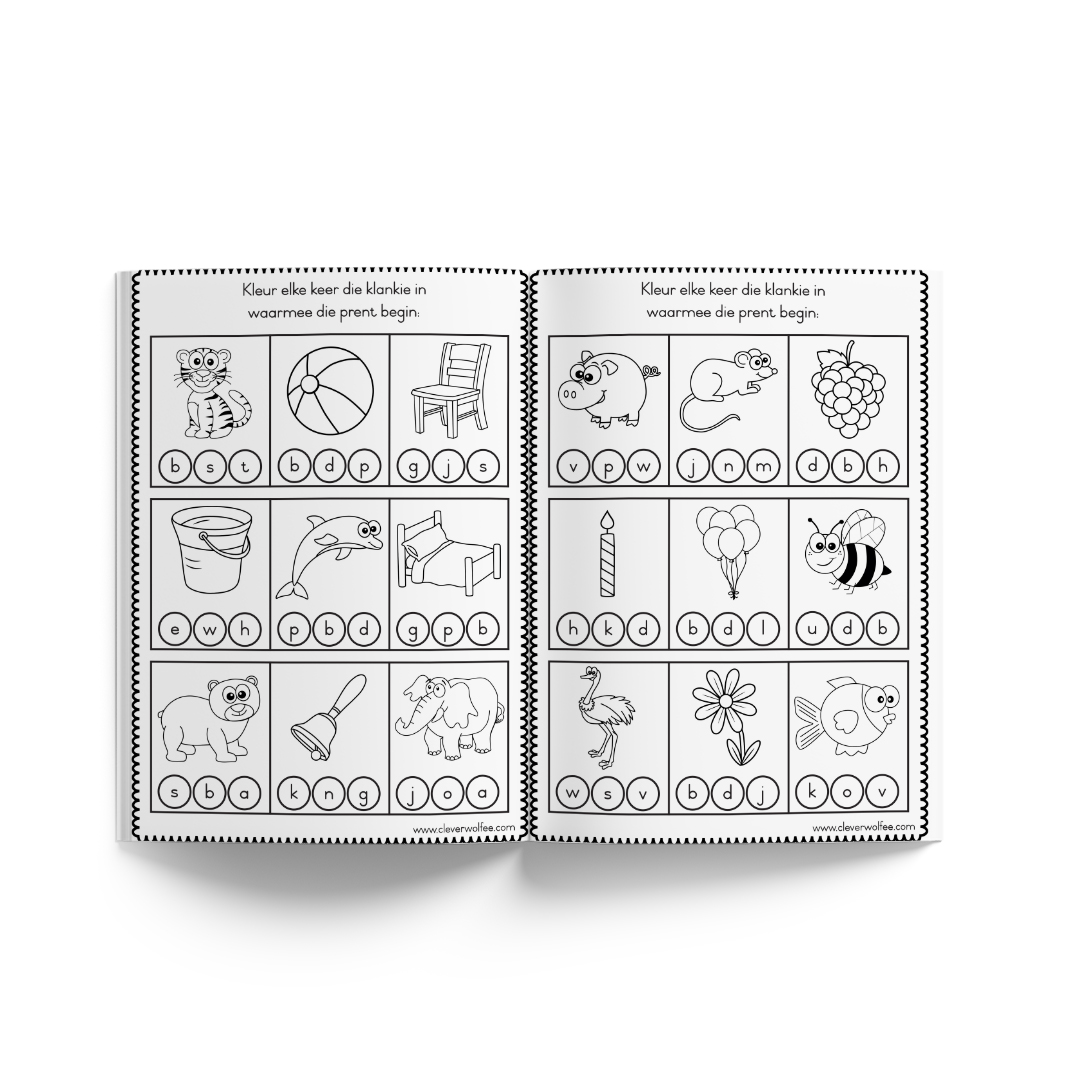 Die kind kleur die regte klankie in waarmee die prent begin.