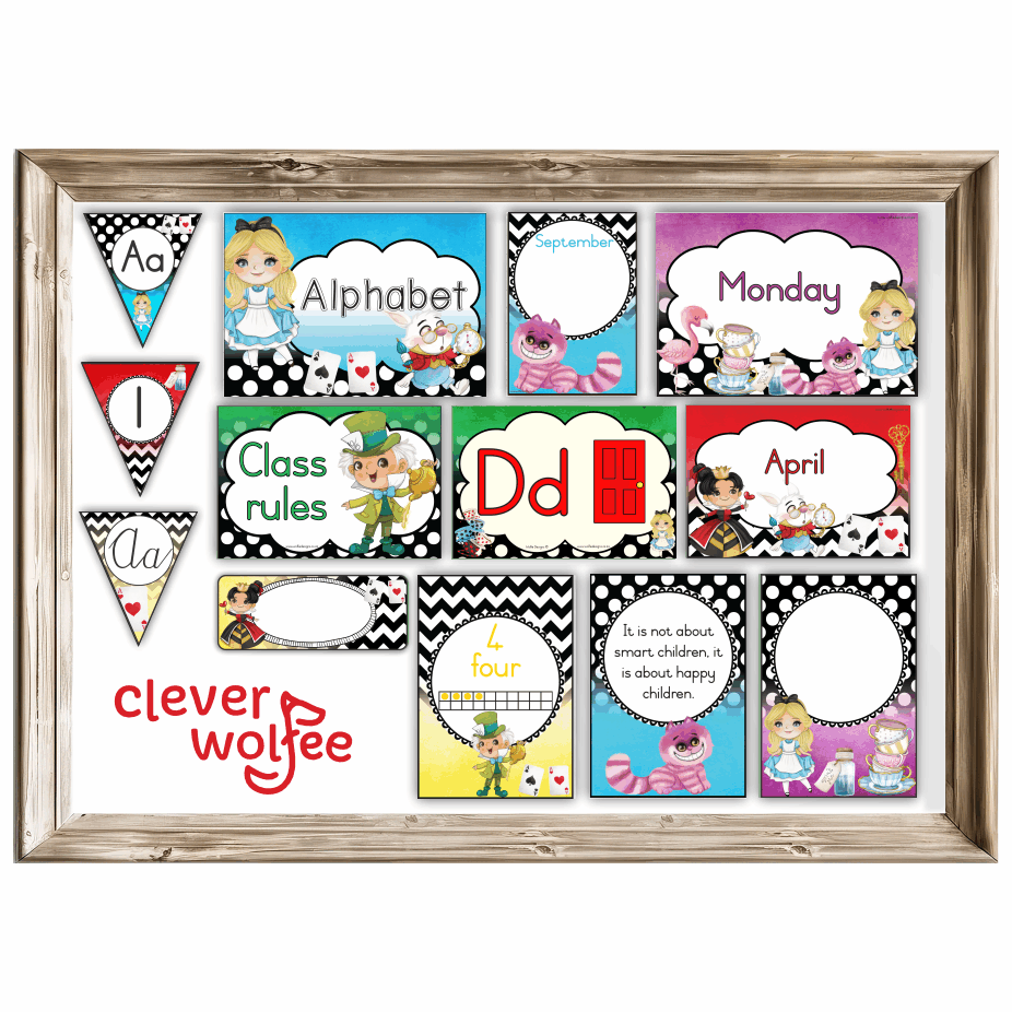 A beautiful class theme with the very famous Alice in Wonderland characters.