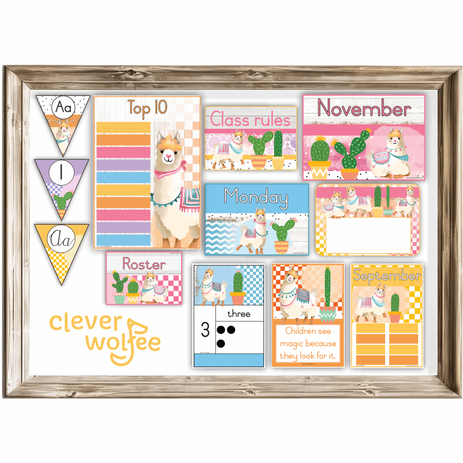 A beautiful class theme with bright lamas.