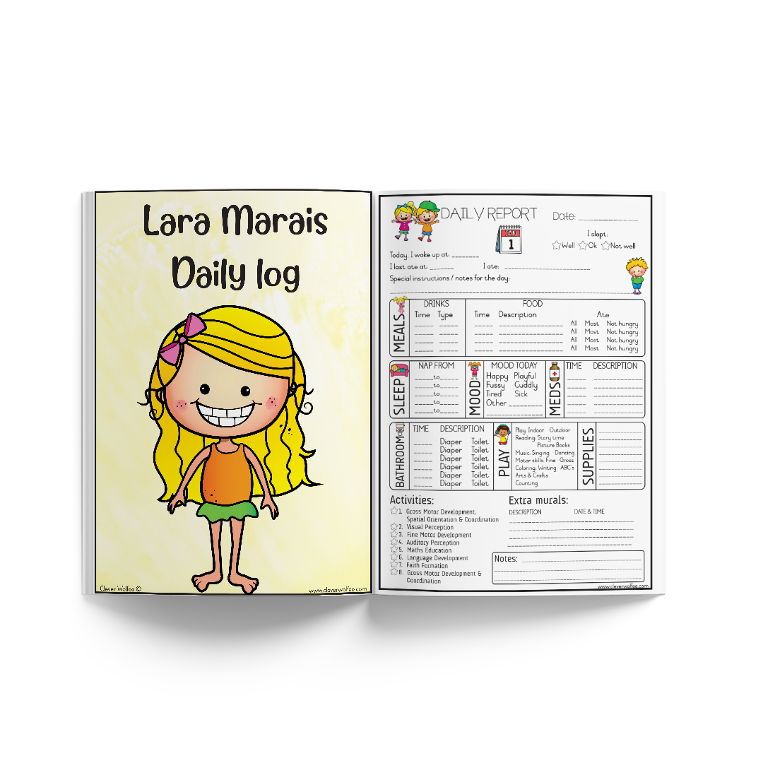 This daily report is very valuable to use in Kindergarten, or at home with a nanny or Aupair.