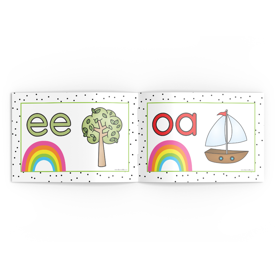 8 Beautiful posters that include the following sounds: oo, ay, ow, ee, ou, ea, ai, ey, oy, oi, ew, aw, au and oa.