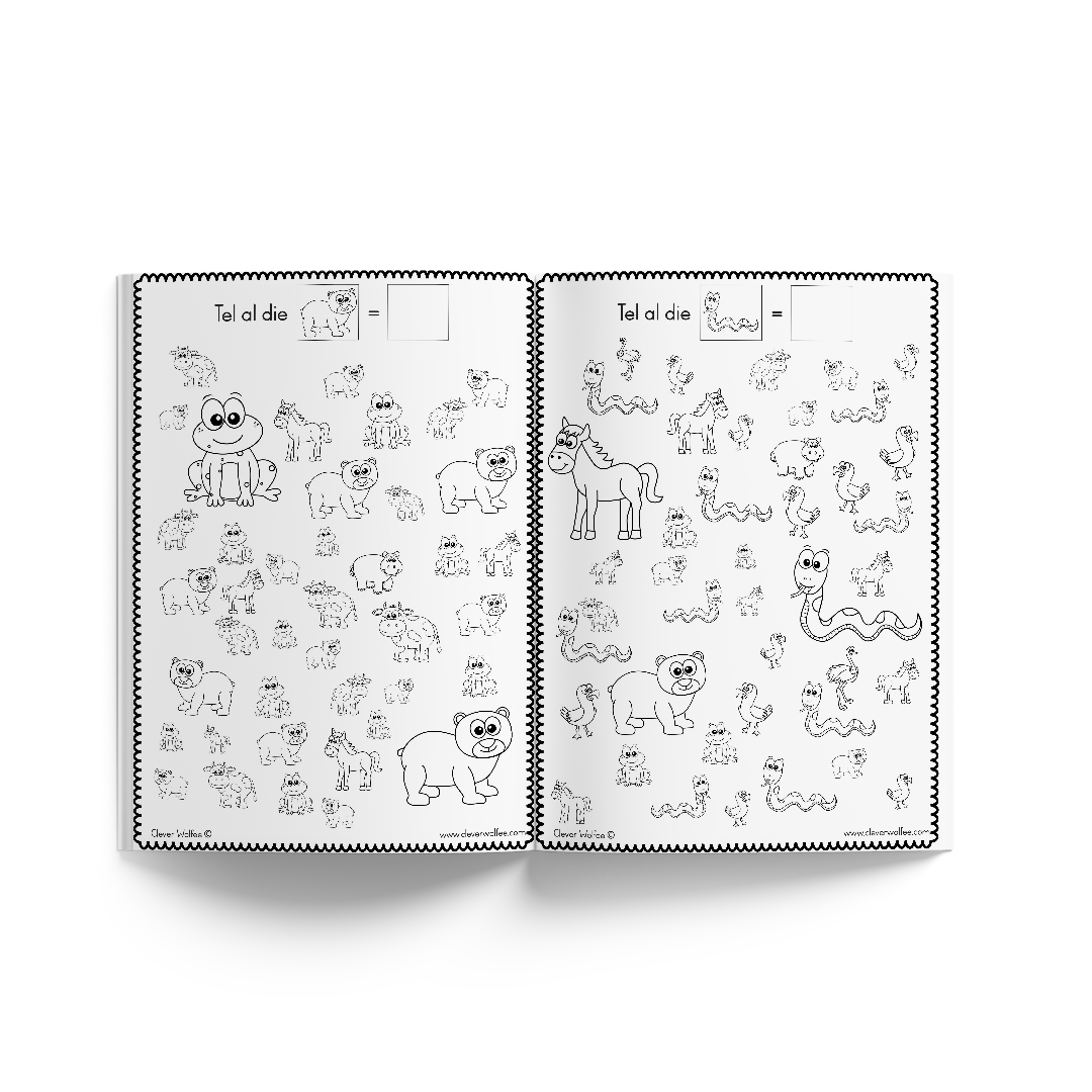 Soek die dier wat gevra word en tel hoeveel daar is.