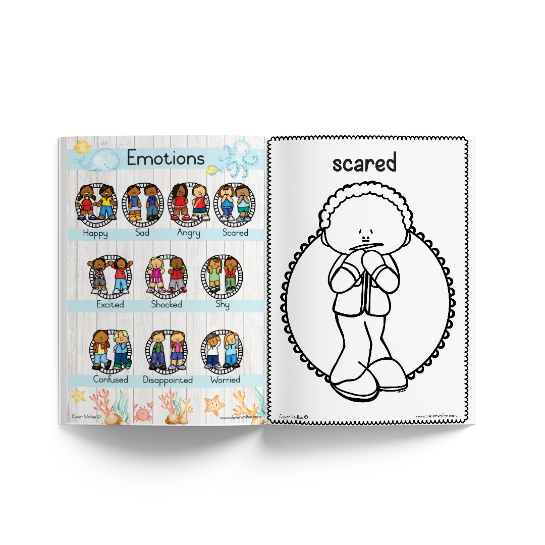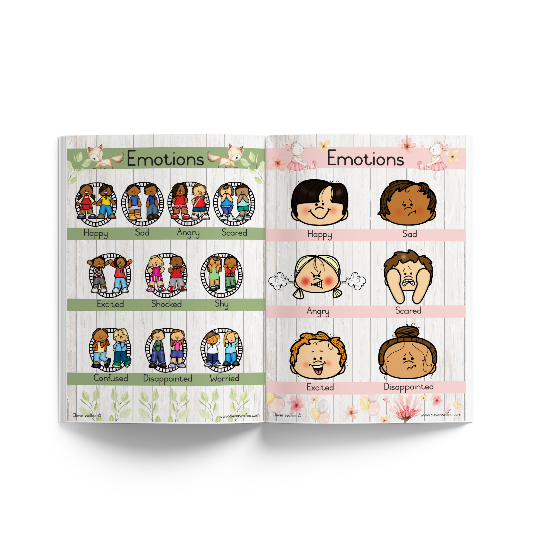 Included are 2 emotion posters in each theme, as well as 5 emotion pictures to color in:
