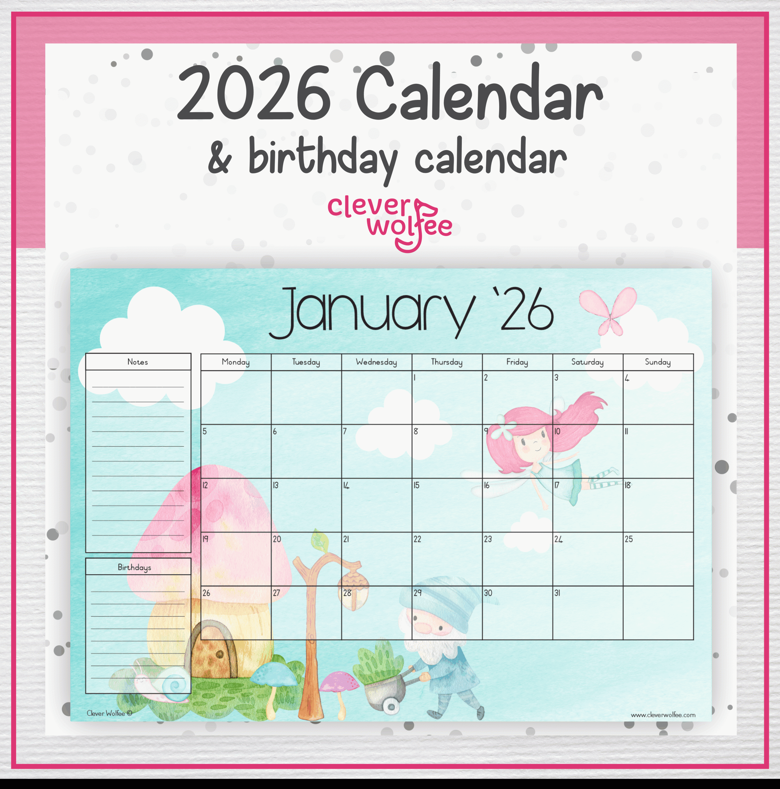 Fairies and gnomes calendar 2026