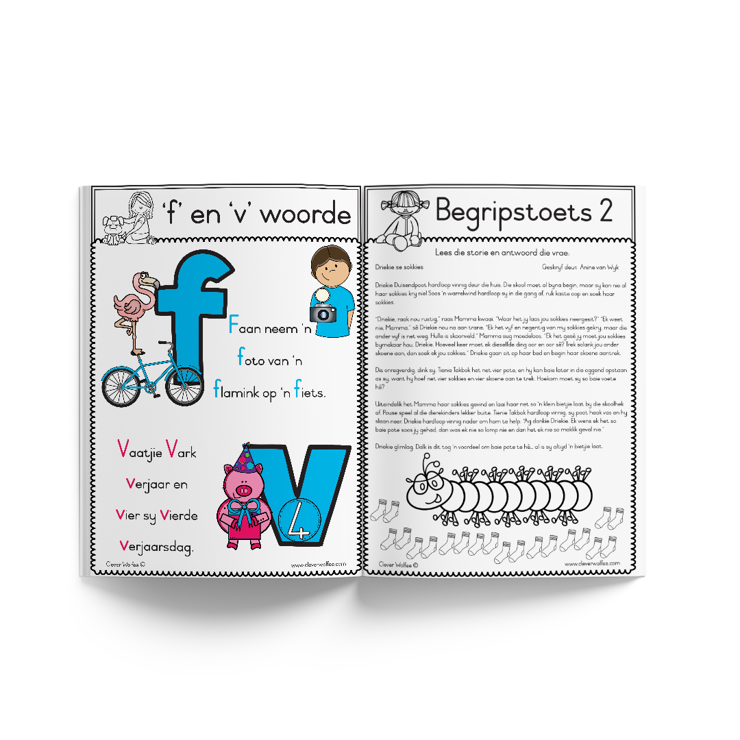 – Hersiening van al die Graad 1 klankies (met ‘n unieke, oulike storie vir elke enkelklankie)