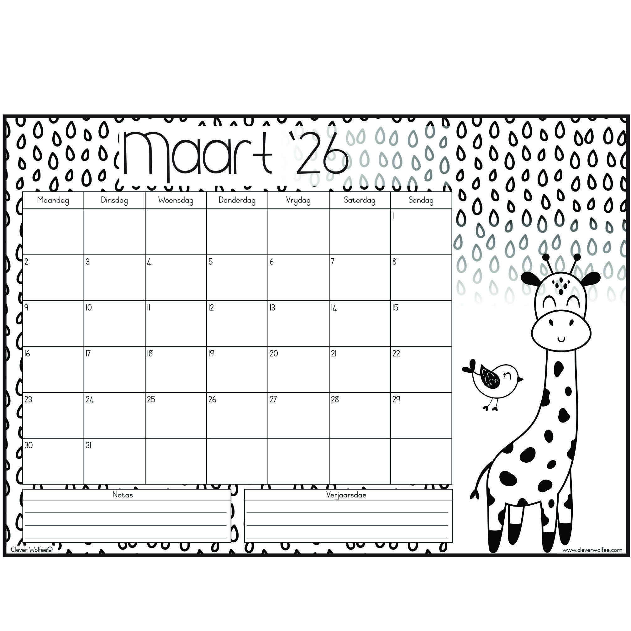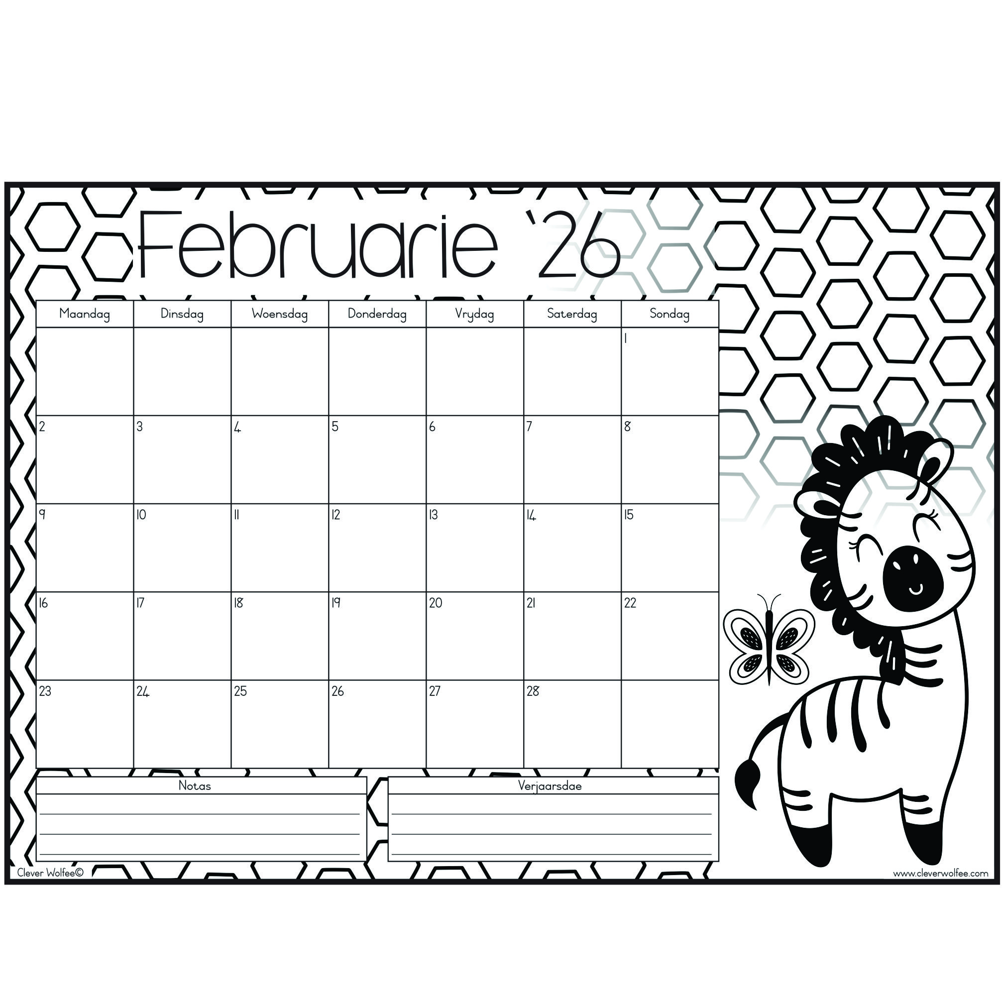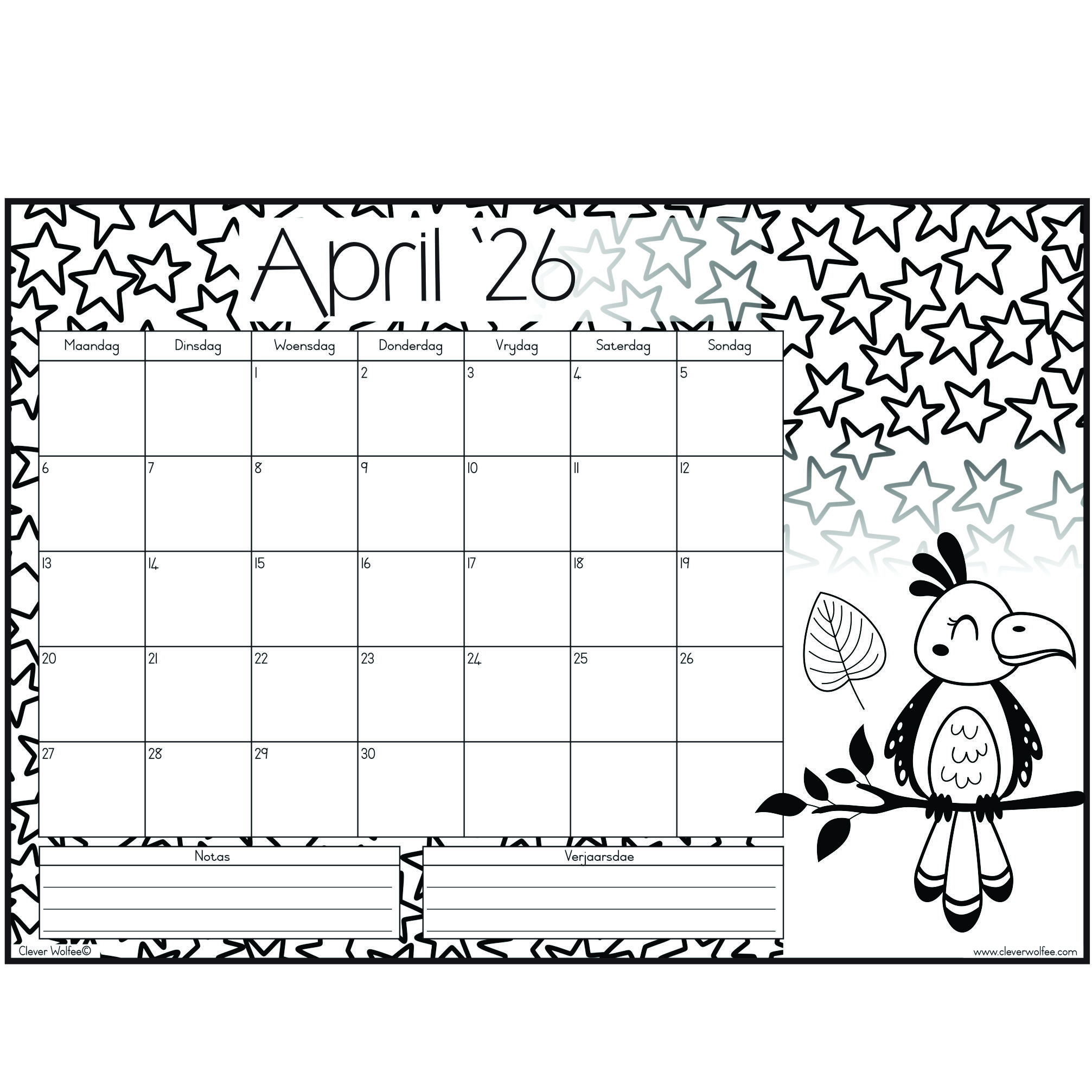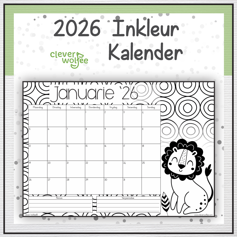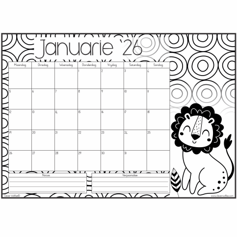Hierdie pragtige inkleurkalender het 12 maande en het die oulikste prente om in te kleur. Perfek vir Mamma, Juffrou of meisies!