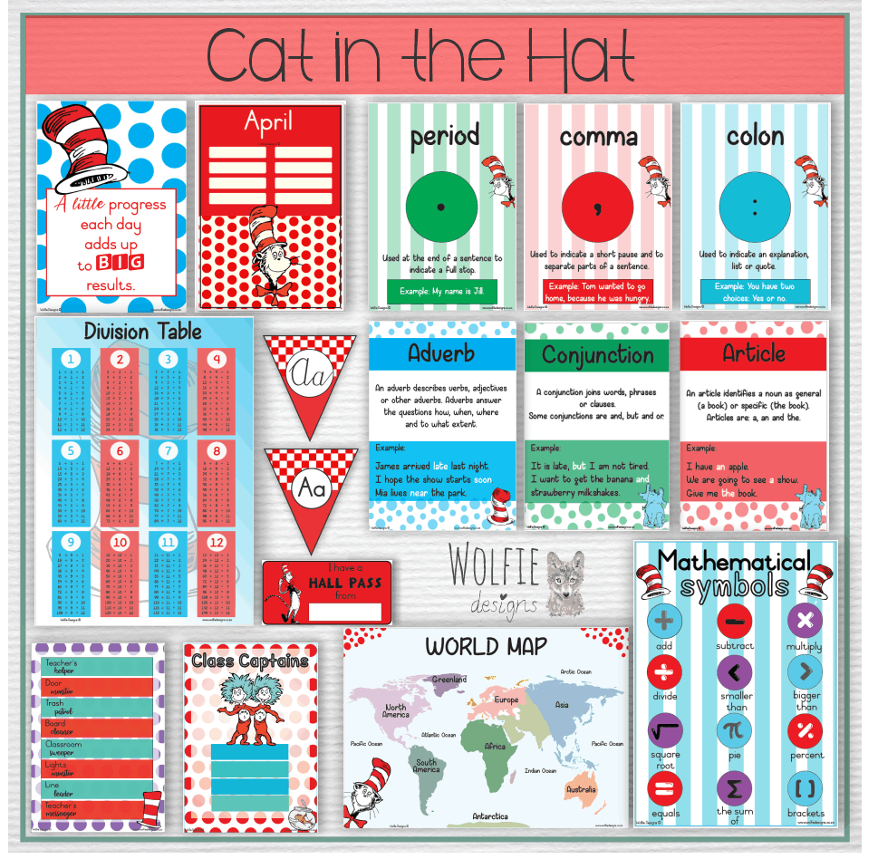 Our Cat in the Hat Class theme is now available with the following posters: