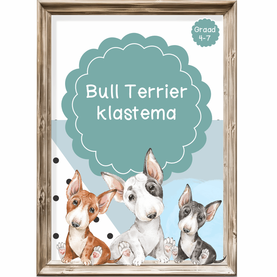 Ons Bull Terrier klastema is nou beskikbaar met die volgende plakkate: