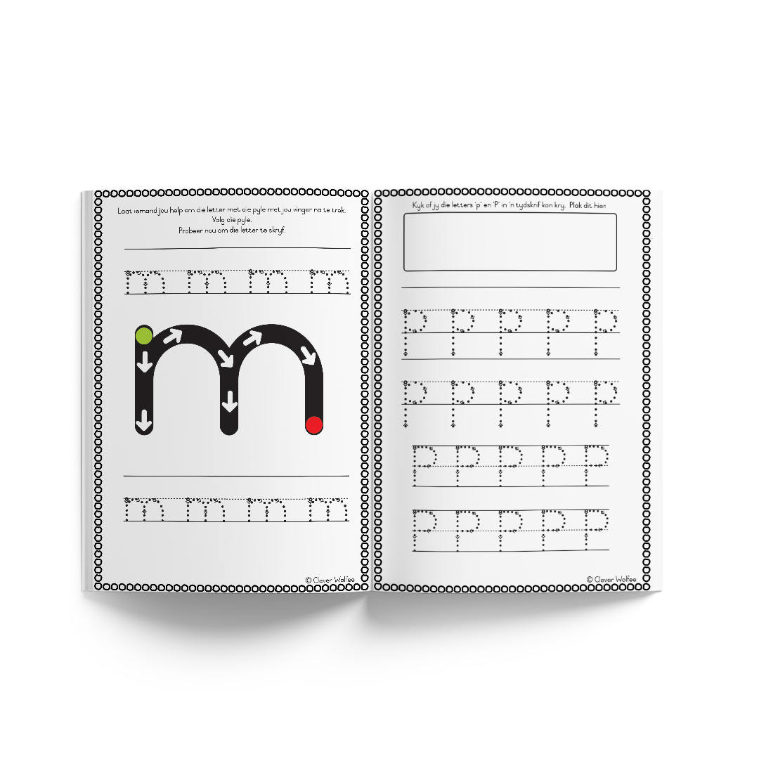 – Oefen om die hoofletter en kleinletter te skryf.