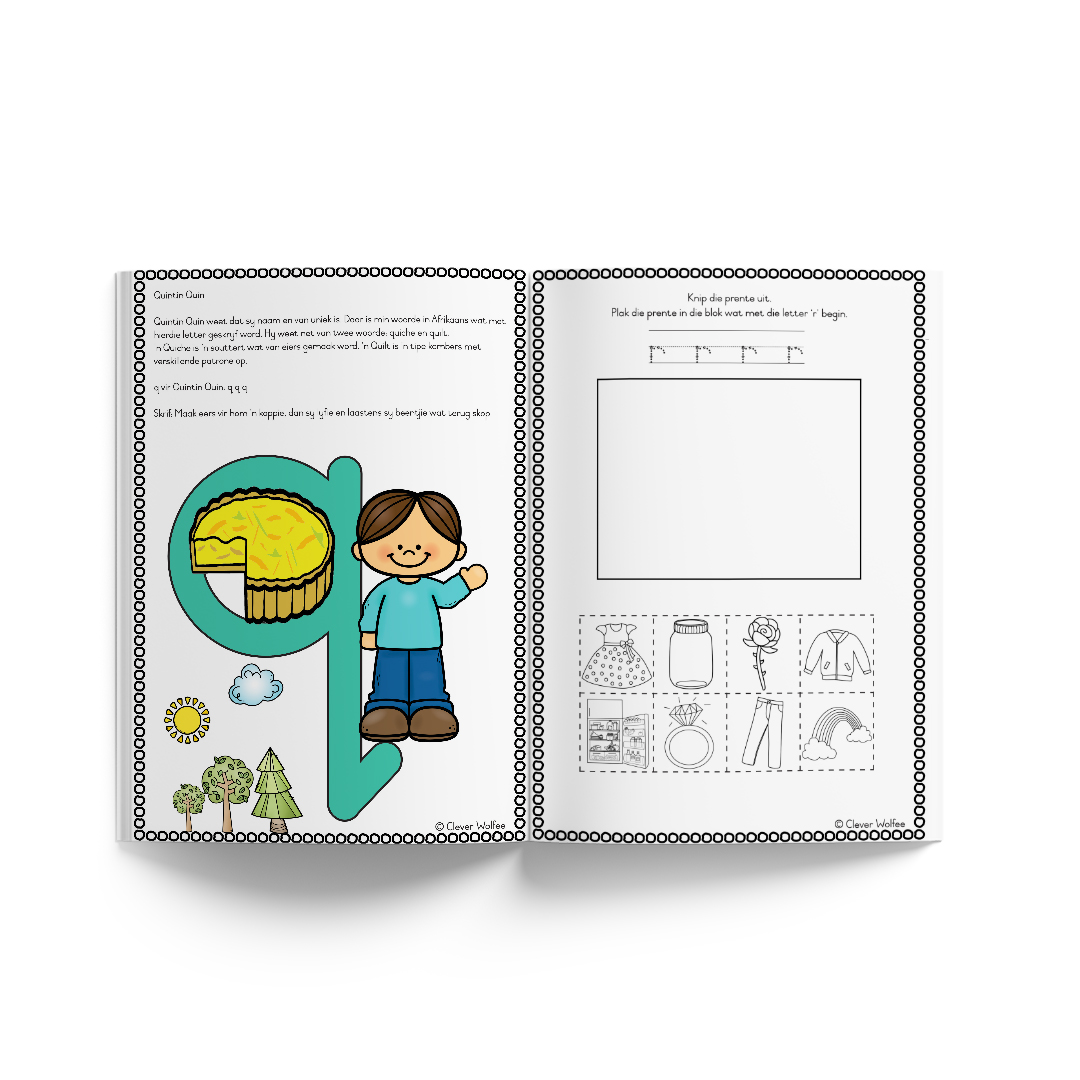 – Elke alfabet letter het ‘n unieke, pret storie en illustrasie om die klankie aan die kind bekend te stel.