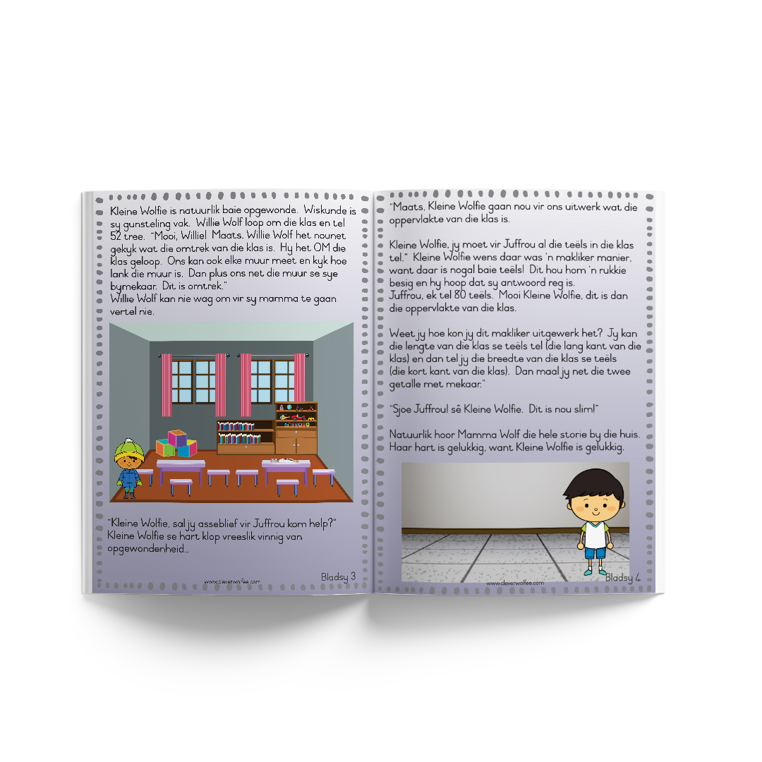Hierdie is ‘n kort storie waar Kleine Wolfie en sy maat, Willie Wolf Wiskunde terme aanleer.
