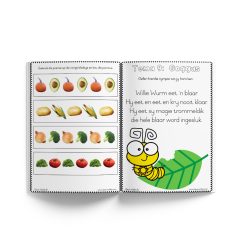 Hierdie boekie het 89 bladsye en bestaan uit 10 temas. Daar is ook 51 praktiese motoriese, oefeninge in en 29 sensoriese oefeninge om te doen.