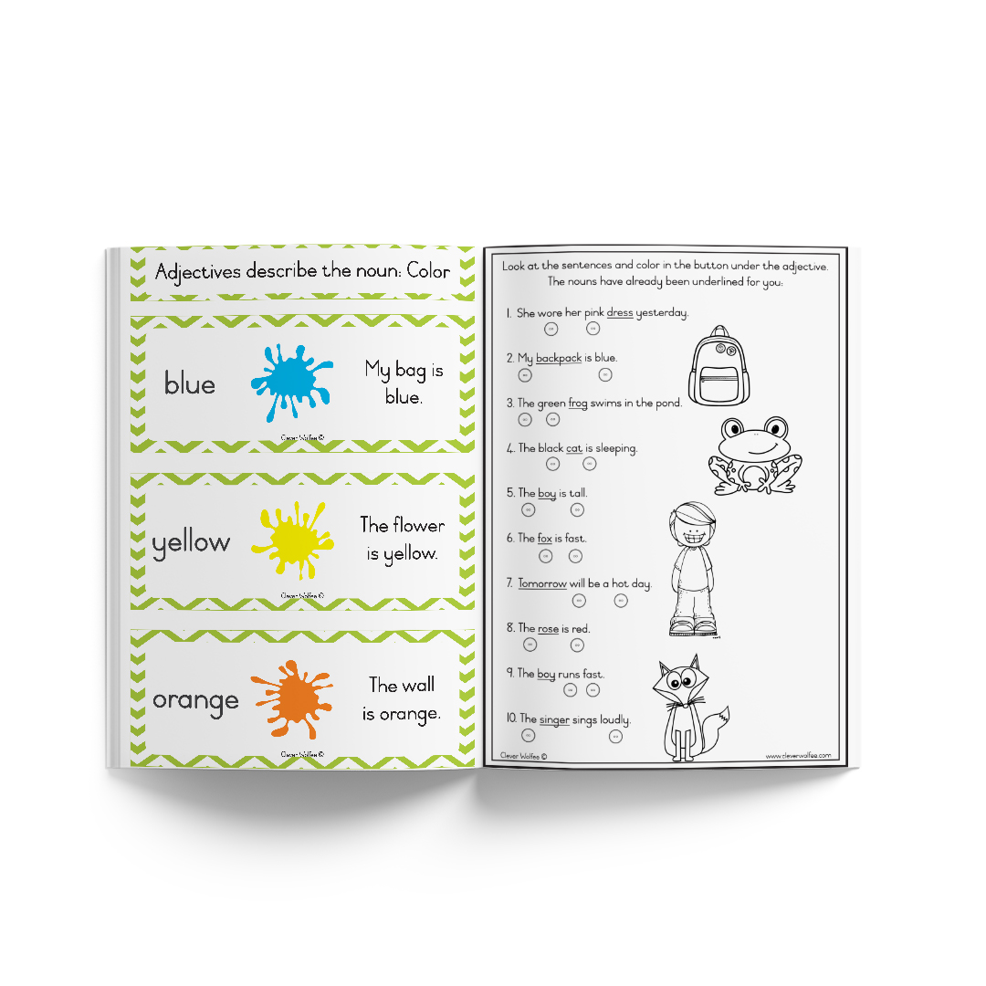 A variety of activities are included to facilitate the concept of adjectives.