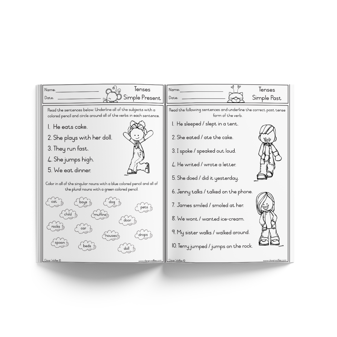 This English Home Language Book consists of 12 pages that cover the simple present, simple past and simple future tenses.