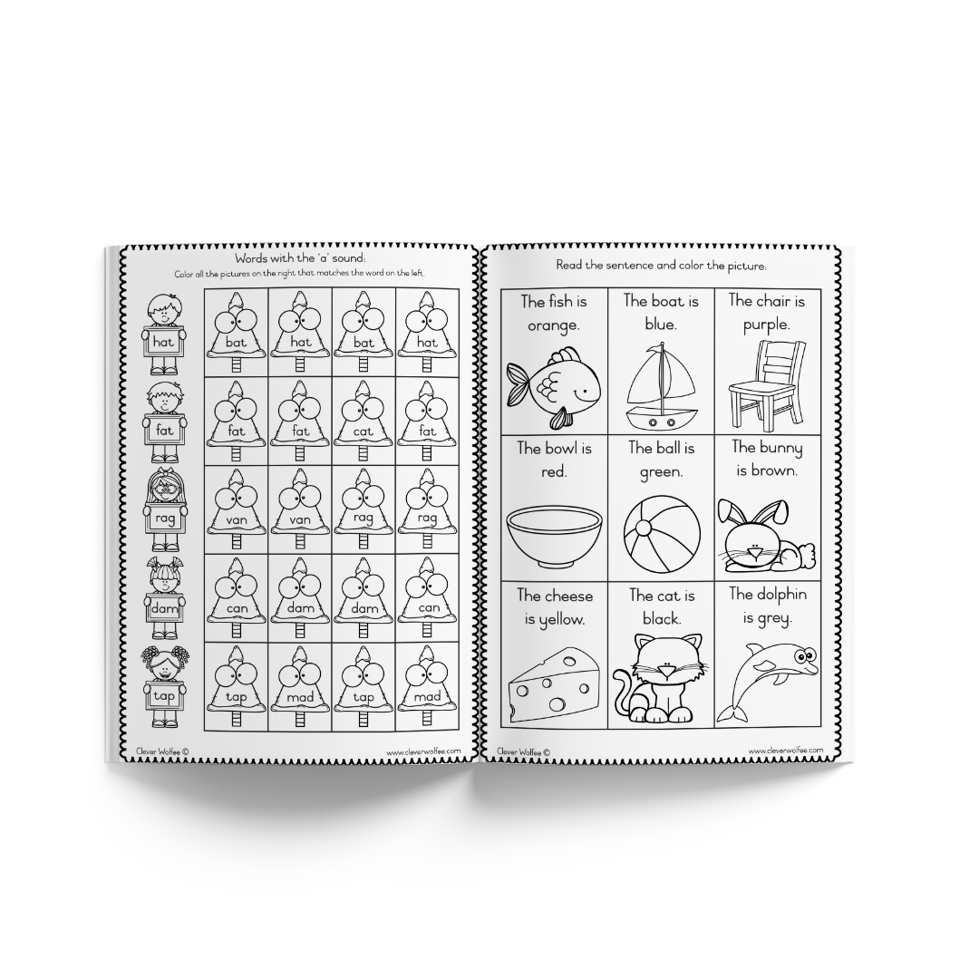 Beautiful pictures were included to practice simple 3 letter words, as well as simple Mathematics up to the number 20.