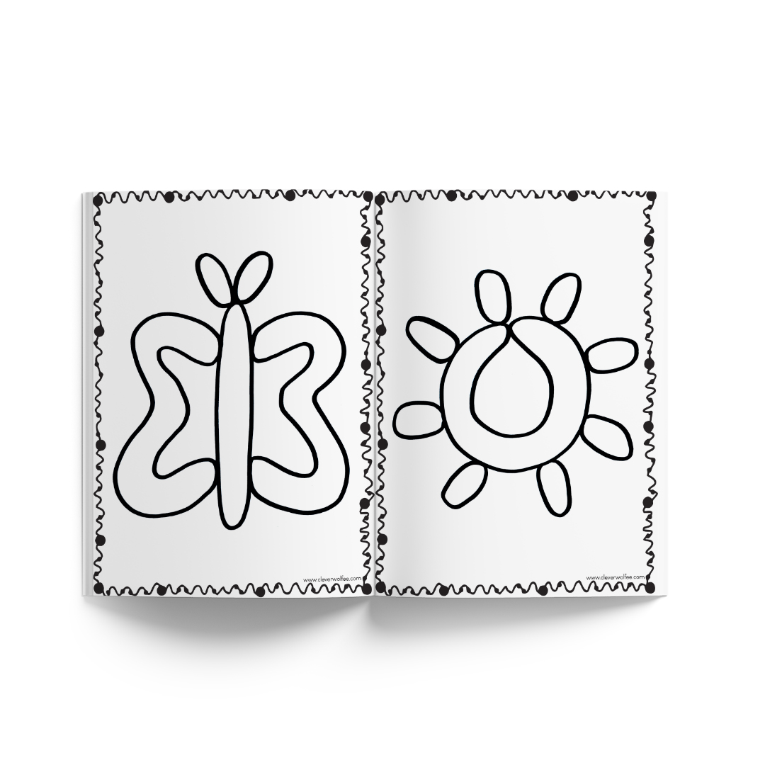Pages of color pictures to form clay over and 8 black and white pages to color in.