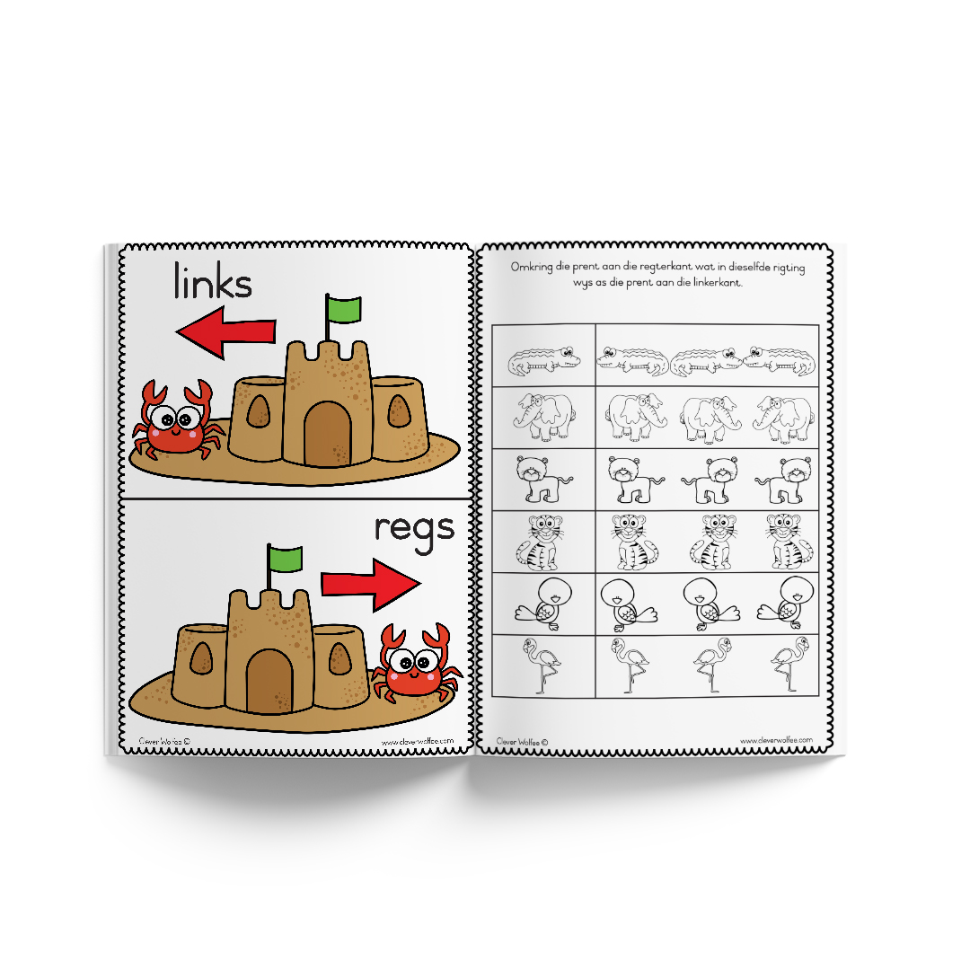 Hierdie boekie bevat 17 oulike aktiwiteite wat die kind se kennis oor rigting sal bevorder en verryk.