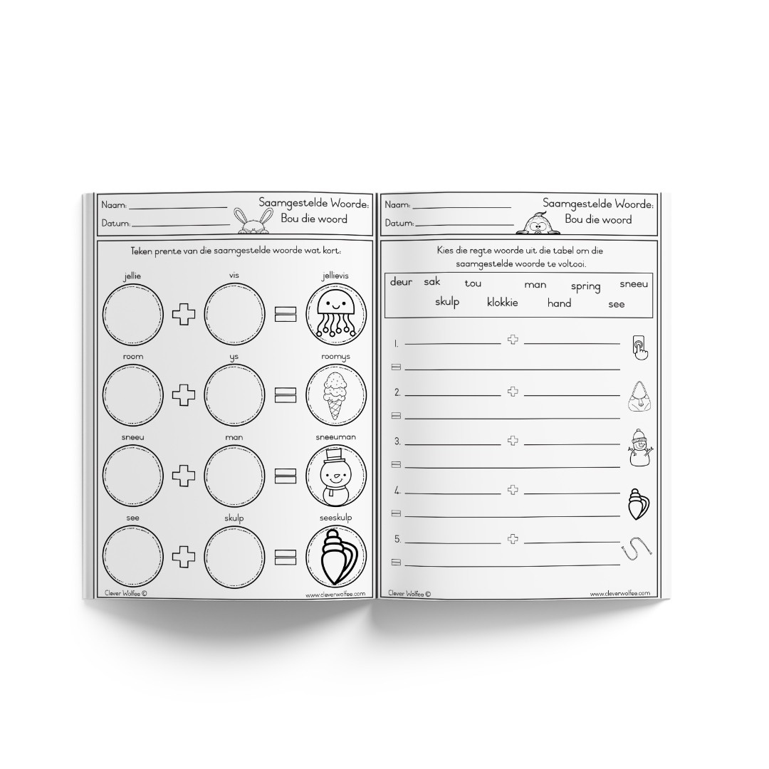 Hierdie oulike boekie bestaan uit 10 bladsye om die leerder van Saamgestelde woorde te leer.