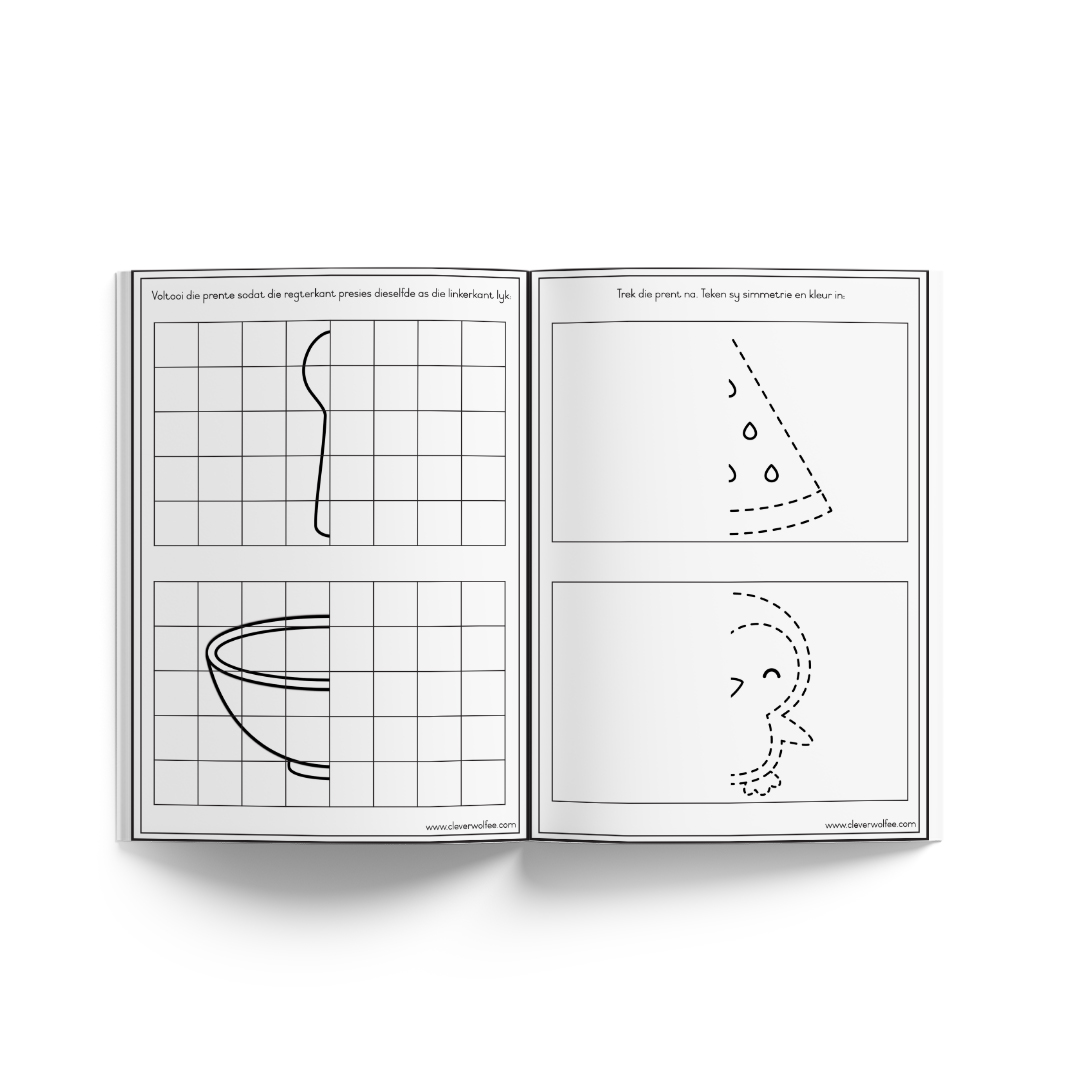 Hierdie boekie het 10 bladsye en is propvol simmetrie aktiwiteite.