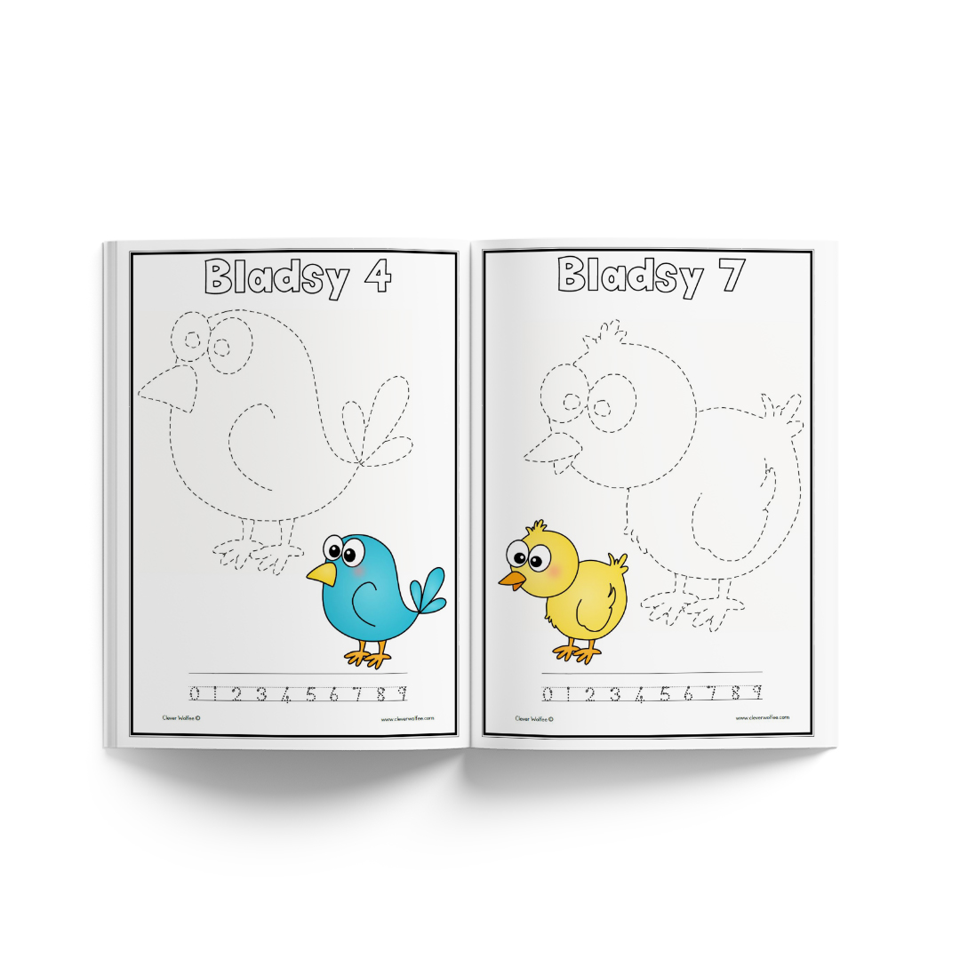 Hierdie boekie het 35 prente om na te trek en in te kleur.
