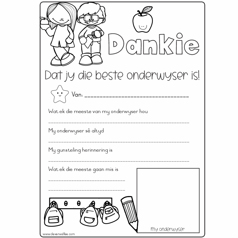 Die kind kan hierdie oulike briefie vir sy of haar onderwyser gee vir onderwysersdag.