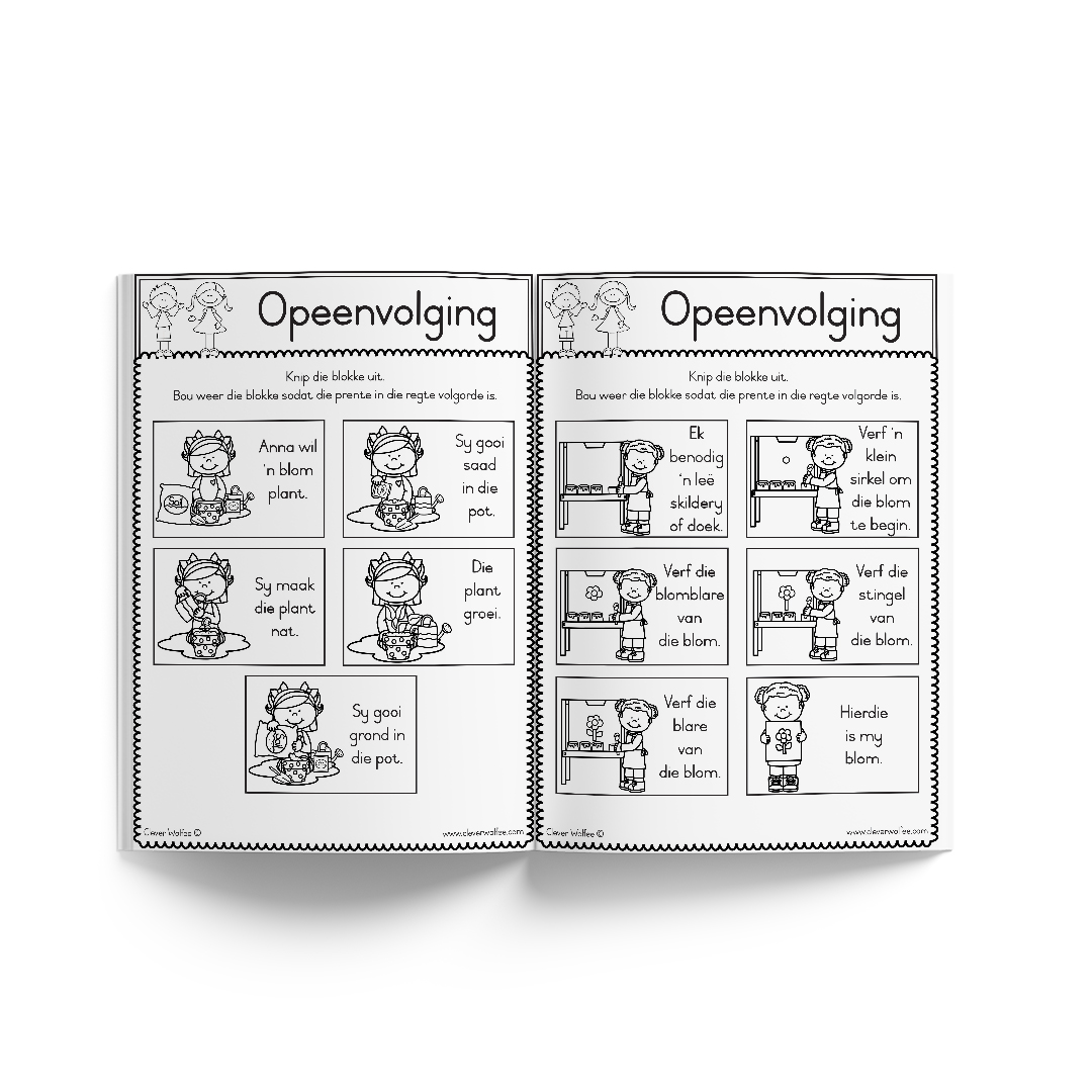 Hierdie boekie het 10 bladsye en 10 verskillende opeenvolging aktiwiteite.
