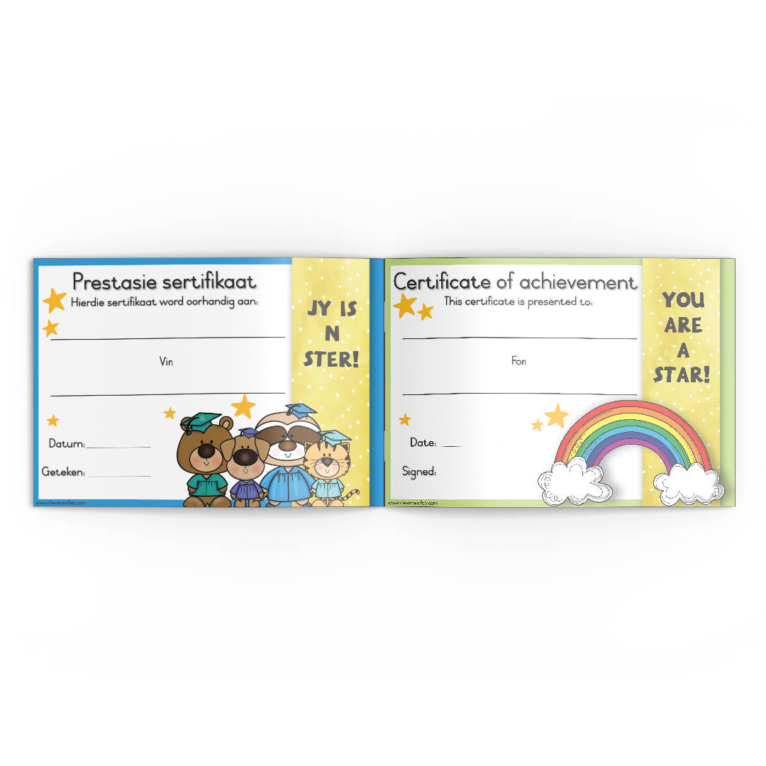 10 Pragtige, kleurvolle sertifikate vir bietjie ekstra motivering! Die Afrikaans en Engels is in hierdie pakket ingesluit.