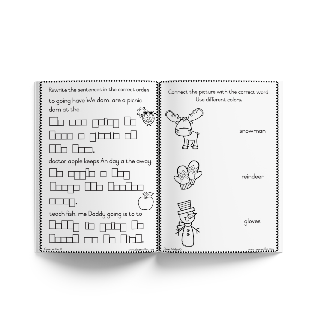 This book has 50 simple sentences which has to be scrambled to create new sentences.