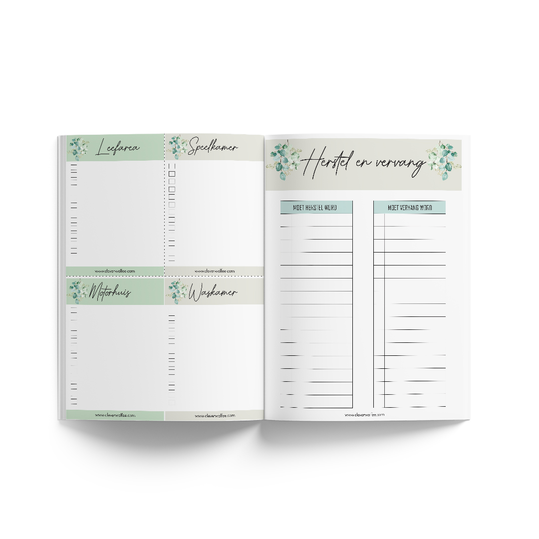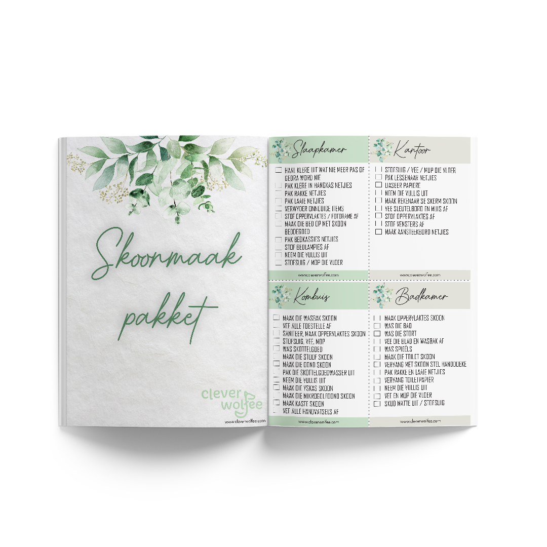 Hierdie is baie handig om die skoonmaak van jou huis en tuin te vergemaklik. Daar is skoonbladsye ook om jou eie roetine te skep.