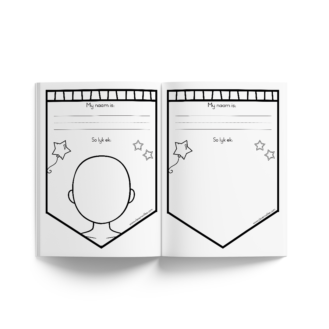 Die kind kan hierdie vlaggie voltooi deur die gesiggie te voltooi en sy/haar naam te skryf.
