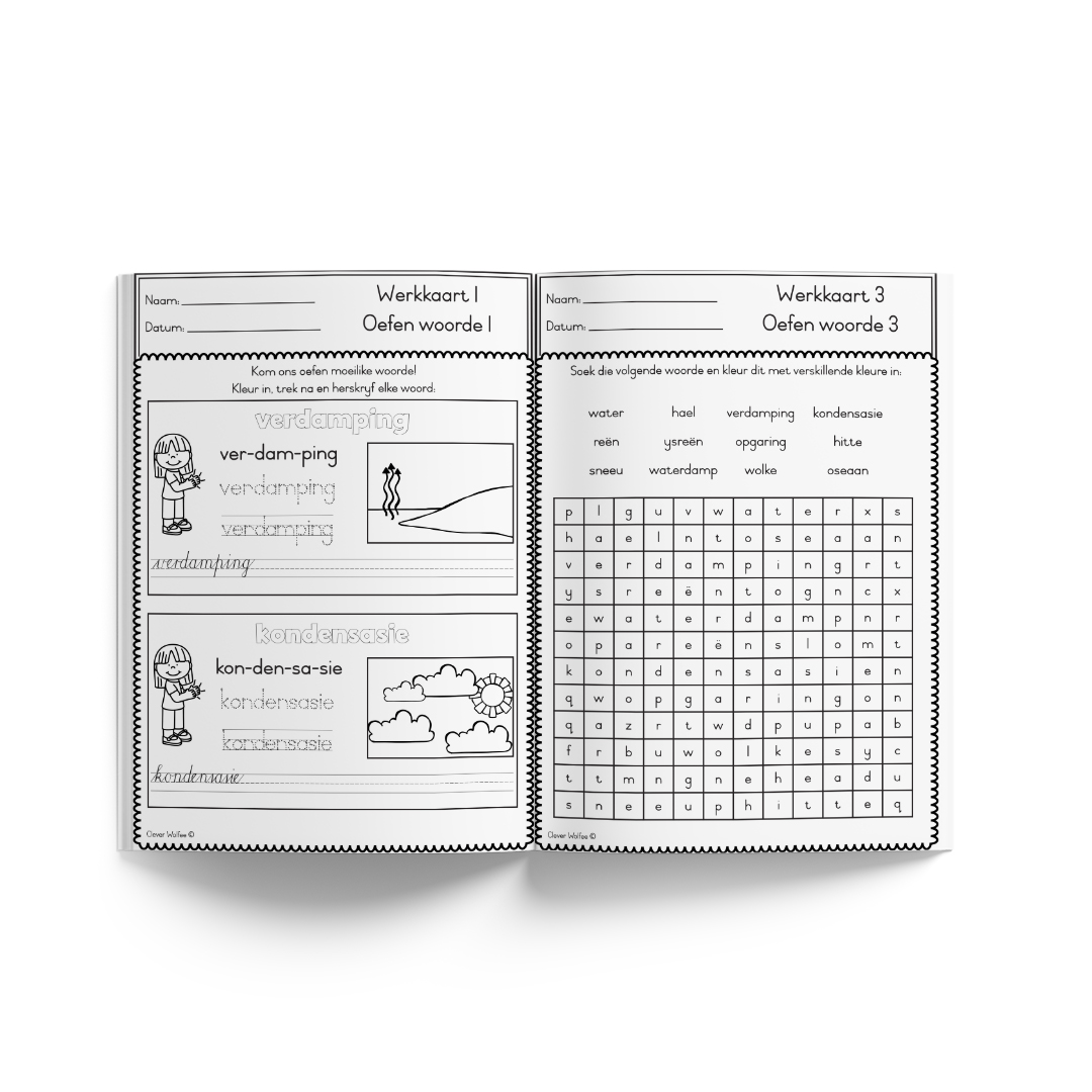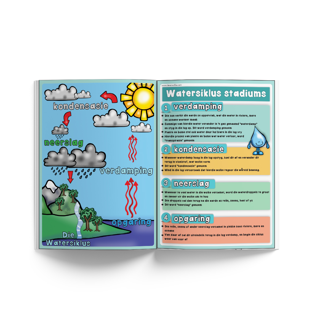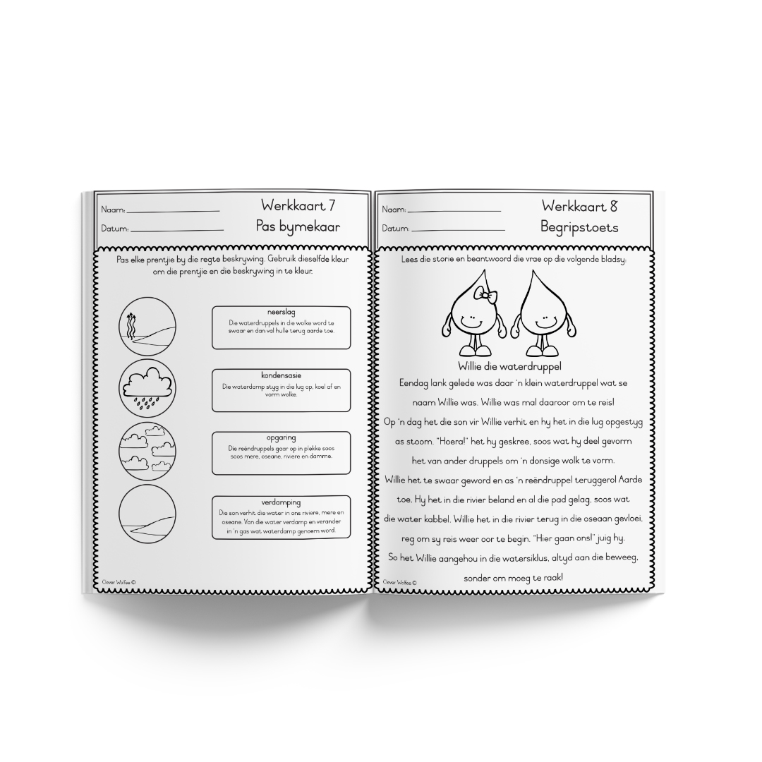 – 11 bladsye met pret aktiwiteite om die leerder van die watersiklus te leer