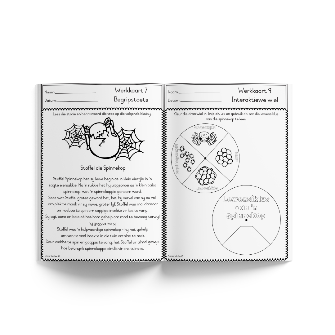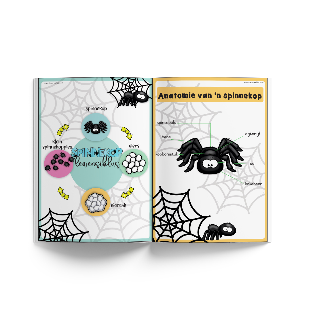 – 10 bladsye met pret aktiwiteite om leerders van spinnekoppe te leer