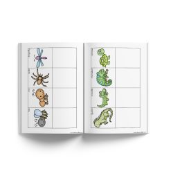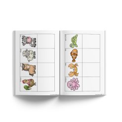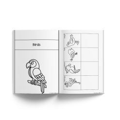 The structured format helps learners practice observation, classification and basic vocabulary development in a calm and engaging way.