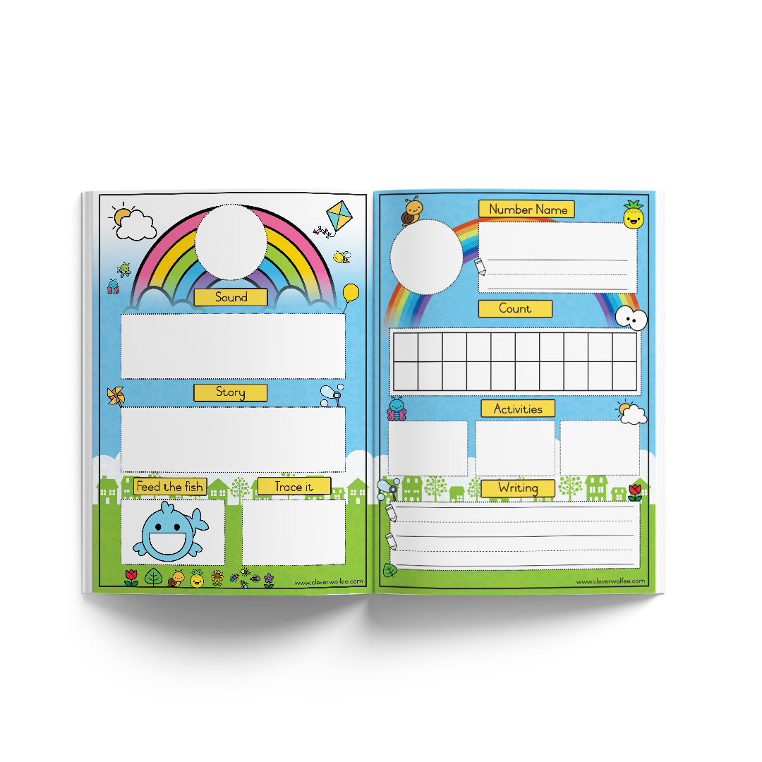 The booklet contains structured activities that can be used during the week to practise one letter and one number.